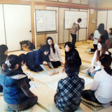 朝鮮半島に伝わる双六のような遊戯ユンノリをみんなで。